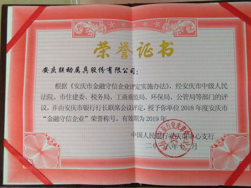 2018年度安慶市“金融守信企業(yè)”