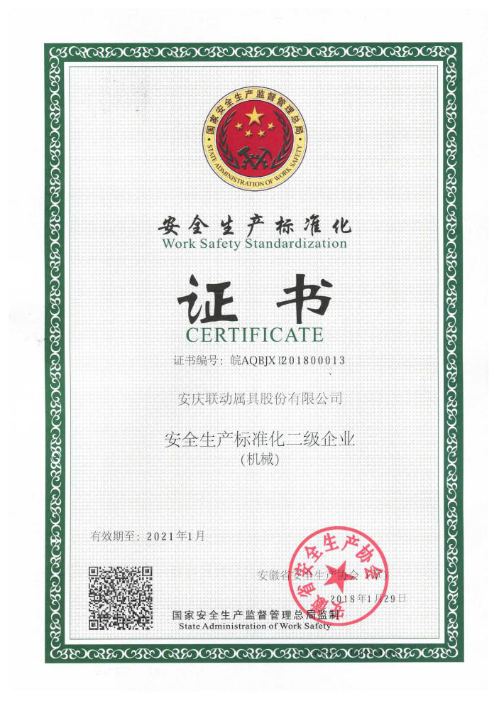 國家安全生產(chǎn)標(biāo)準(zhǔn)化二級企業(yè)